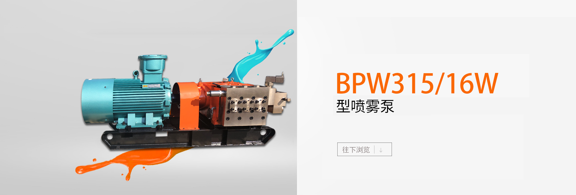 BPW315/16W系列噴霧泵與QX400/30清水箱組成噴霧泵站,是為煤礦井下各種采煤機、掘進機提供噴霧滅塵所需壓力水的動力設備。該泵站由兩臺泵和一臺箱組成。一臺泵使用,一臺泵備用。