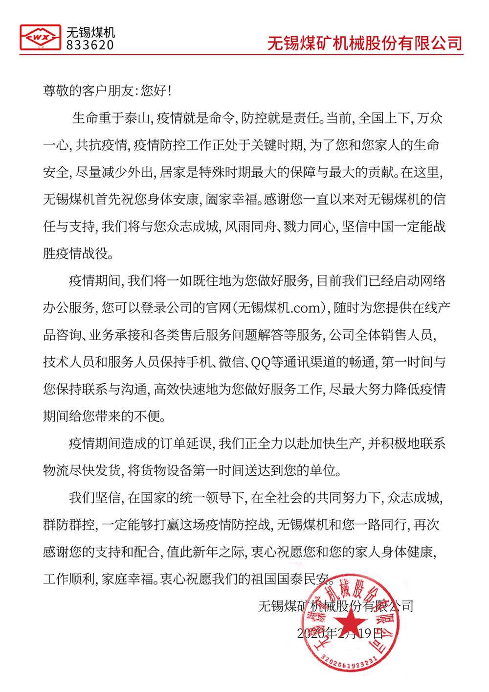 我們與您同在,眾志成城 - 無錫煤機(jī)